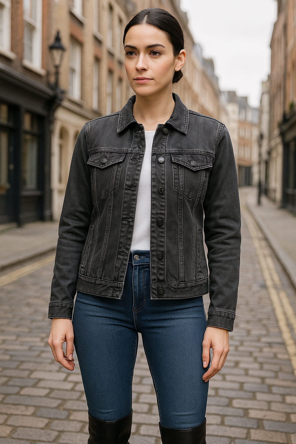 Elevate your style with our Charcoal Black Denim Jacket! Made from soft denim fabric, this stretchable and slightly oversized jacket offers both comfort and fashion. Make a statement with this versatile piece, perfect for any occasion.